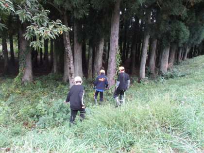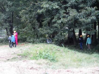 2つ目の種目は「ぼくらは地球探検隊」です。「同じ葉っぱを見つけ出しましょう」というミッションを達成するため、子供たちは森の中に繰り出して行きました。