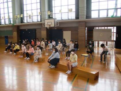 学習発表会の練習が体育間で始まりました。場面ごとに分かれてどんな演技にしたらよいか考えて練習に取り組んでいます。一言一言に気持ちを込めた台詞も猛特訓中です。