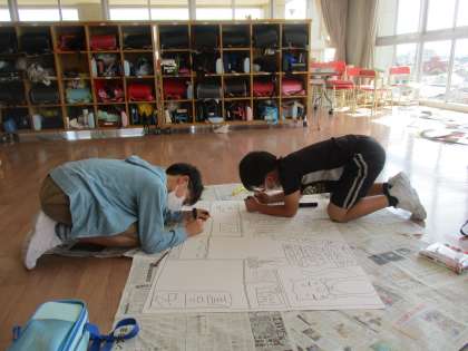 学習発表会に向けて、背景のイラストや小道具等を頑張ってつくっています。