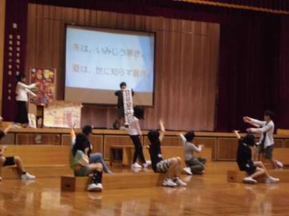 校内発表会で、上学年の子供たちは、学んだことや学習を通して考えたことなどを発表しました。子供たちは、学習発表会で最高の演技をしようとはりきっています。