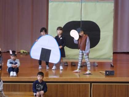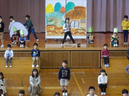 初めての学習発表会。どの子も、たくさんのお客さんを目の前に緊張する中、自分の出番にはしっかり立ち、大きな声で台詞を言えていたと思います。