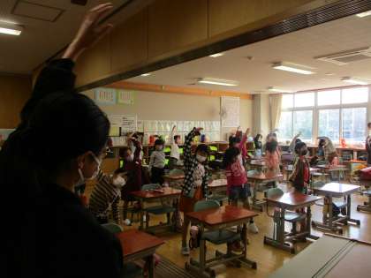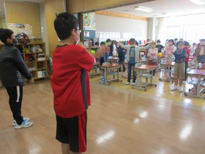 『朝の時間にラジオ体操をする』運動委員会の企画が始まりました。この企画のねらいは、生活のリズムを整えたり、正しい動きを身に付けたりすることです。寒くなってきて体が硬くなってしまいますが、子供たちは、全身がのびてすっきりすることを体感できた様子でした。