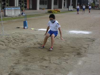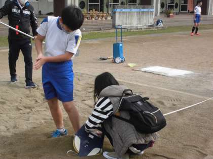 走り幅跳びでは、「高く跳ぶこと」「踏切り前3歩で合わせること」「着地の姿勢」の3点を意識しました。練習を始めた時と比べると、フォームも美しくなり、記録も大きく伸ばすことができました。