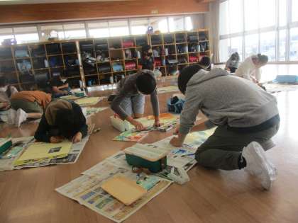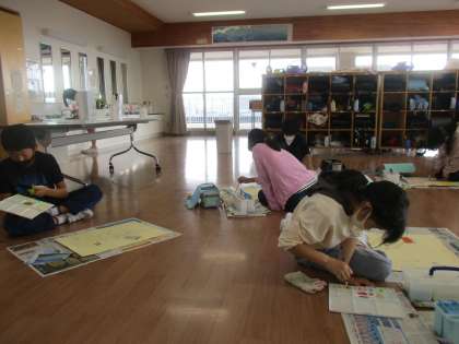 子供たちは、1枚の写真から想像を広げ、楽しそうに描いたり色を塗ったりしています。