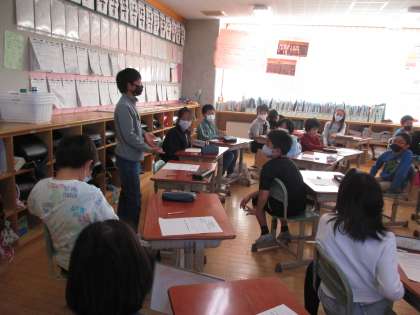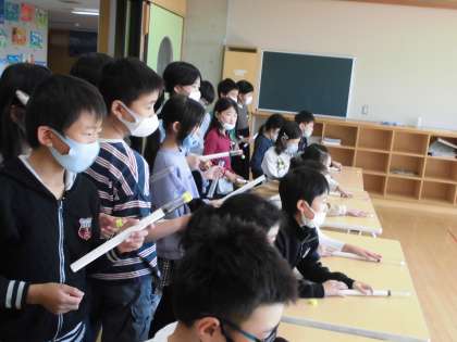 学習参観で、4年生は、理科と道徳の学習をしました。理科では、空気鉄砲を飛ばす実験を行い、押されると空気はどうなるのかを考えました。