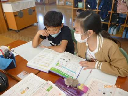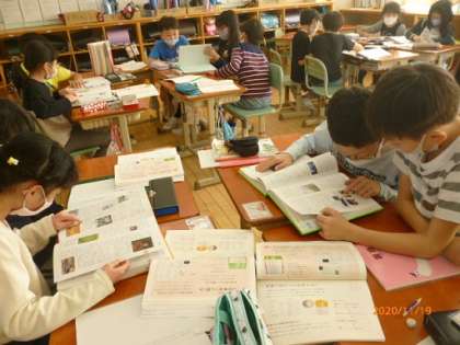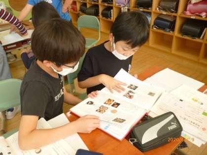 今日は、国語科の学習で百科事典の使い方を学習しました。あいうえおが書いてある「背」をみる、色分けされたしるしの「つめ」をみる、太字の「はしら」をみるの3つのポイントをたどってひらきました。みんな熱心に百科事典を使っていました!