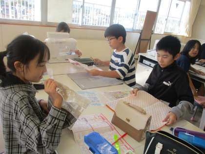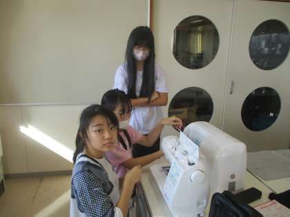 家庭科ではミシンを使ってのトートバッグ作りを始めました。