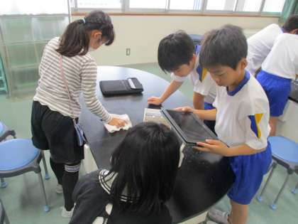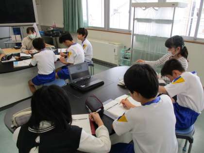 流れる水の実験をしました。川筋に合わせて水を流すと、侵食、堆積、運搬の作用を見て取ることができました。実験の様子をクロームブックで撮影し、まとめる活動にも生かしていました。