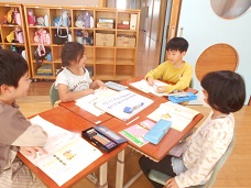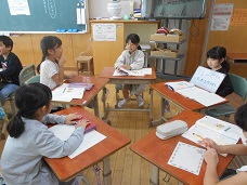 国語科「そうだんにのってください」では、互いの話に関心をもって聞き、相手の発言を受けて話をつなぐ学習をしました。解決できそうな助言を、自分の経験を生かして考えていました。