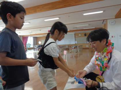 10月初旬から来ておられた教育実習生の先生とのお別れ会です。子供たちは仲よくなった先生に楽しい時間を過ごしてもらおうと、数日前から計画や準備を進めていました。みんなでゲームをしたり手紙を渡したりと、先生との別れを惜しみながらお別れ会を行いました。
