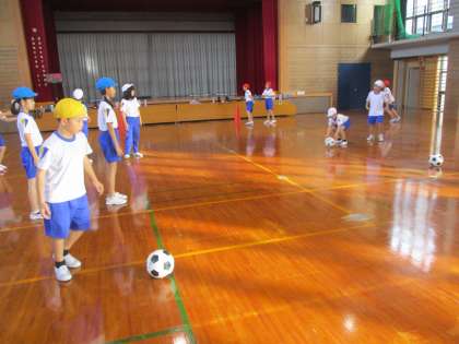 4年生は合同で、キックベースボールの練習に取り組んでいます。今日は、色団でチームに分かれて、転がってきたボールをしっかりキャッチしました。足の間から抜けていかないようにしっかりと腰を落とし体で受け止めたり、ボールの動きをよく見て後ろにいる人が素早くカバーしたりして活動しました。