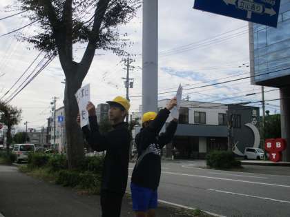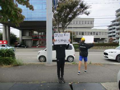 より多くの方にゴミのポイ捨て禁止を伝えるべく、けやき通りで呼びかけを行いました。呼びかけでは、多くの方に見ていただいたり、声をかけてくださる方がいて、伝えることができたという実感をもつことができたようでした。また、道ばたに落ちていたゴミを拾う活動も行いました。これからも西田地方のゴミを減らすことができるよう、活動を続けていきます。