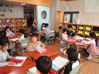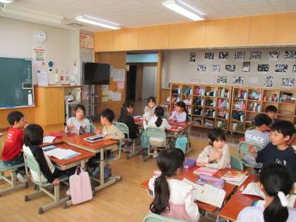 リレーで勝つための秘訣や、漢字をきれいに書くコツ等の話題を、グループで相談しています。友達のアイディアを聞いてメモを取り、やってみたい取組が見付かりました。