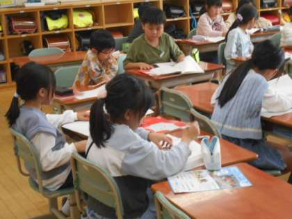 国語の学習で、作文の構成について考えていました。はじめ、なか、おわりを意識して、自分の伝えたいことが書けるようがんばっていました。