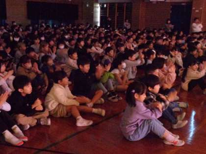 演劇鑑賞会では、子供たちが影絵遊びを体験するコーナーもありました。説明を聞きながら、「鳩」や「フクロウ」の影絵をつくってみました。