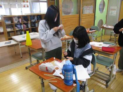 図画工作科で、針金と和紙を使っての明かりづくりに取り組んでいます。