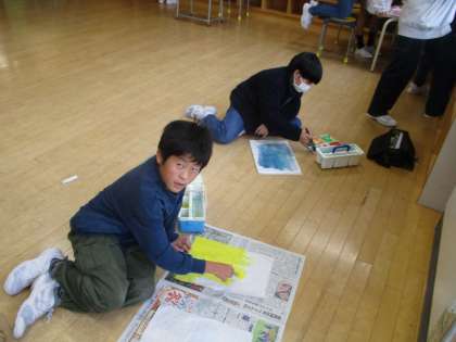 針金で型を作ったり、和紙に色をつけたりと、それぞれ作業を進めています。