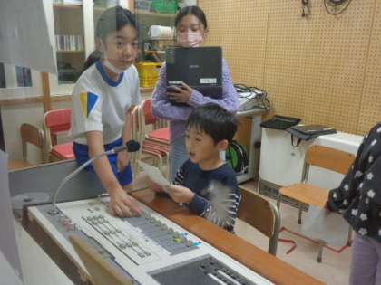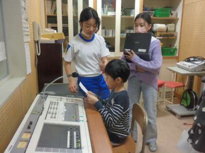 放送委員会による、各学級2名ずつ放送体験をする企画が行われています。今日は、1組の日でした。代表になった子供たちは、事前に渡された台詞をしっかりと練習してきて、マイクの前ではきはきと放送を行っていました。