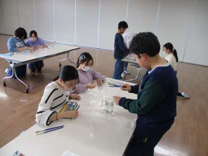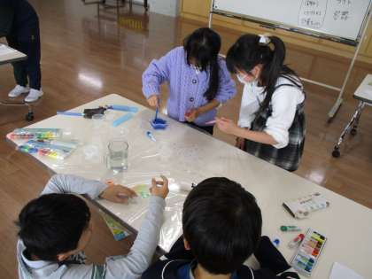 水に色を着けたり、光を当てたりして自分がきれいだと感じる見え方を探しました。