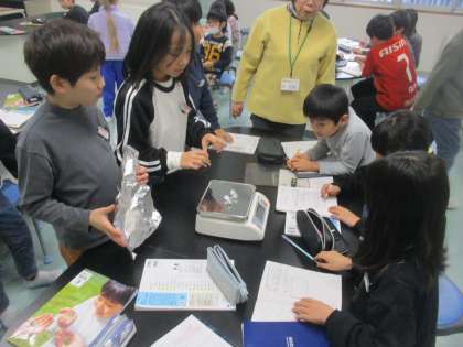 理科の授業で、色々な形のアルミホイルの重さを測って比べました。細長い形や丸い形など、様々な形のアルミホイルの重さを比べて、重さに変化があるかに注目して実験しました。