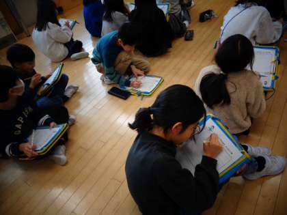 2学期の最期の総合的な学習の時間では、イベントやグループ活動でどのようなことがスマイルアップにつながったかを振り返りました。「イベントでは、みんなで内容を考えたり、相手に合わせて活動を工夫したりして協力しました」と自分たちの活動を振り返りました。これから自分たちが続けられる活動も考えました。