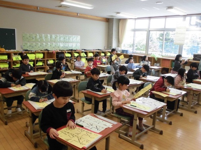 練習の成果を生かし、集中して書き初めに取り組みました。