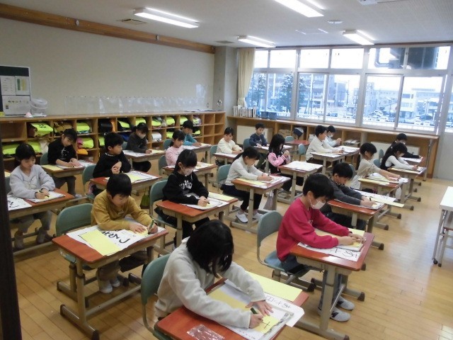 始業式の後、書き初め大会が行われました。