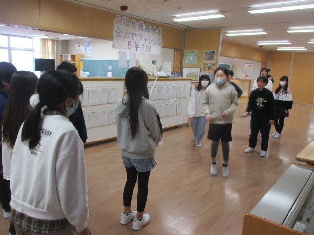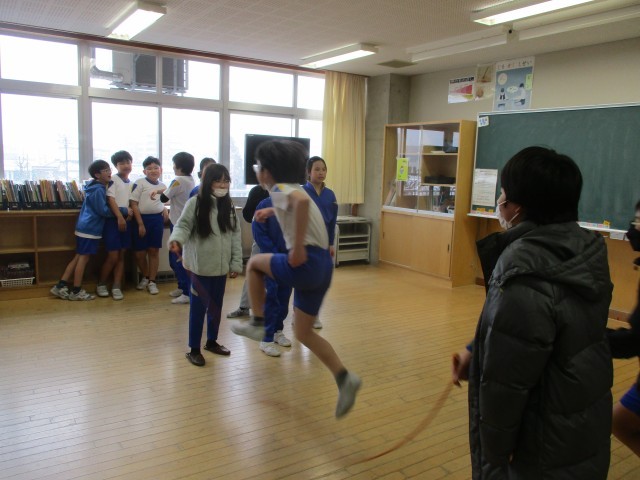 今日の学級の時間は、大縄大会に向けて各学級で大縄とびの練習をしていました。回す速さを考えたり、色々な跳び方を試してみたりと、楽しんでいました。
