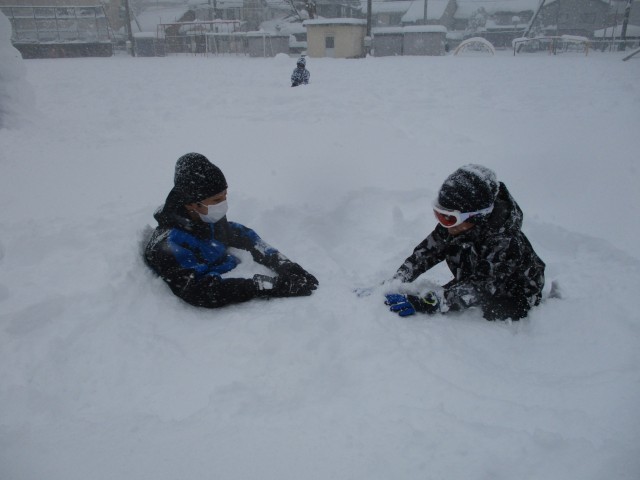 たくさん雪が降ったため、みんなで雪遊びをしました。