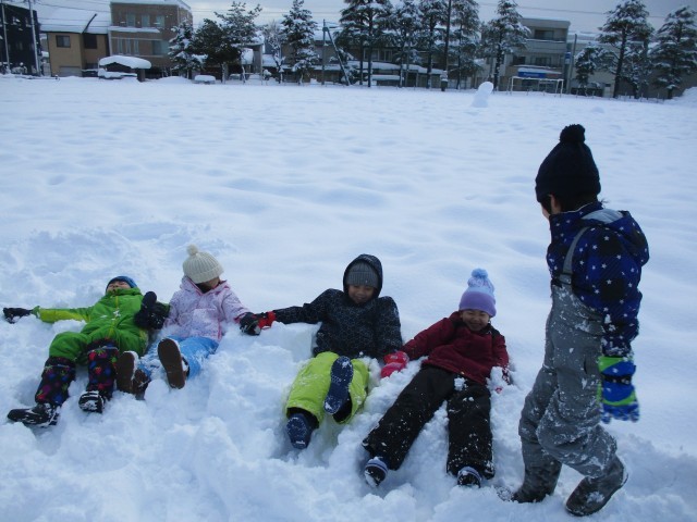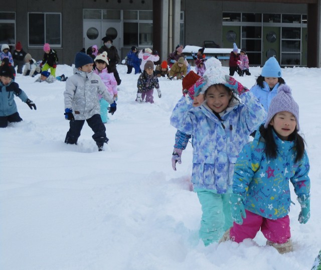 子供たちは、たくさんの雪に大喜びしながら、友達と一緒に雪合戦や雪だるまづくり等を楽しみました。