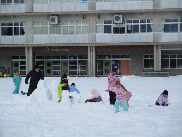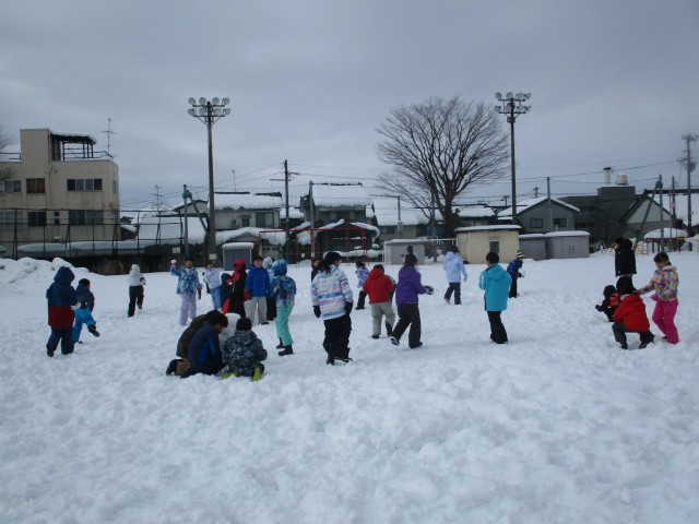 4限目に雪遊びをしました。雪合戦グループと制作グループに分かれてそれぞれ雪遊びを楽しみました。グラウンドいっぱいに広がった雪を見て、みんなとってもはしゃぎ、遊び尽くしました。