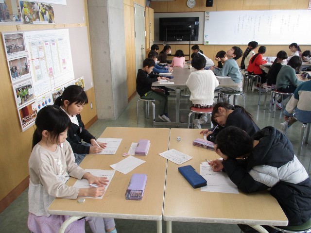 今回は、「これからもがんばっていきたいこと」を作文に書くために、将来の夢や自分ができるようになったこと等を考えながら、文の構成を考えました。できるようになったときの気持ちや将来に向けてがんばりたいことを思い起こしながらメモを書いていました。