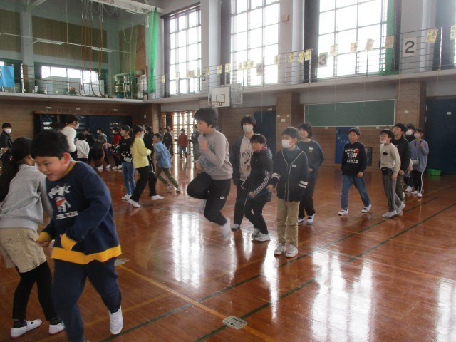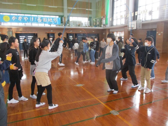 運動委員会主催の大縄大会がありました。縄を回すスピードを考えたり並び順を工夫したりして練習をしてきました。本番では新記録が出たクラスもあり、盛り上がっていました。