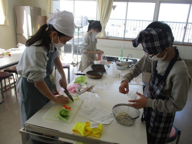 1食分の献立を考え、そのうちの1品を協力して作りました。