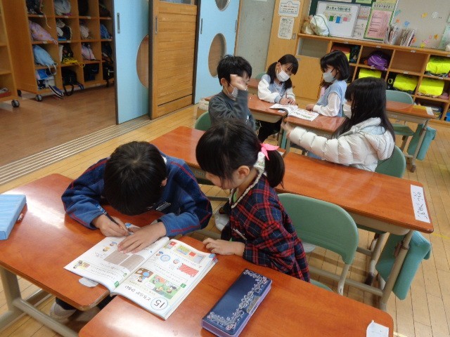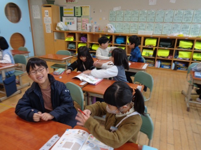 ペアでじゃんけんをし、勝ったら1マスずつ塗る陣地取りゲームをしました。塗ったマス目を数え、マス目の多い方が広い陣地であることを実感して、勝ち負けに一喜一憂して楽しみました。