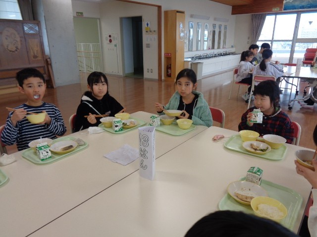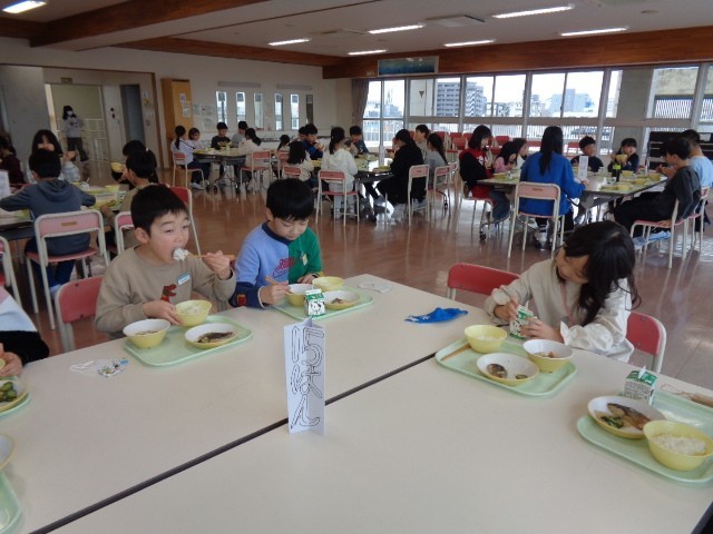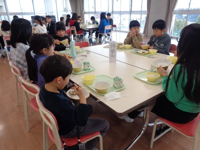 今日は白団の縦割り会食でした。一緒に話をしながら、縦割り班の人たちと楽しく給食をいただきました。