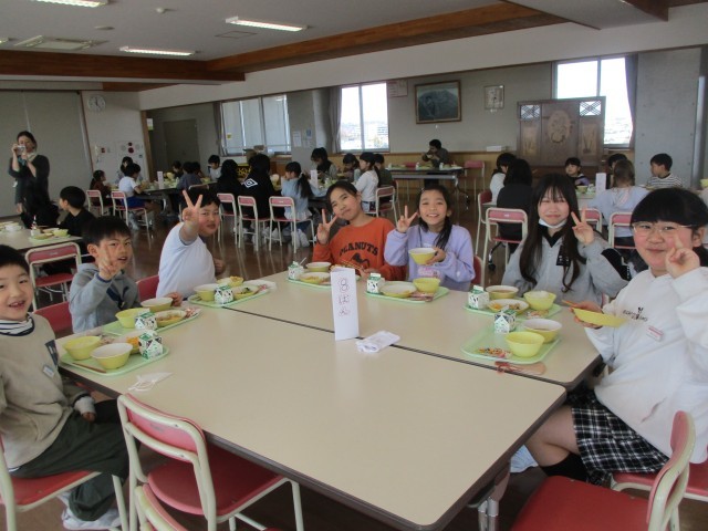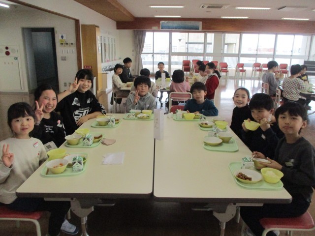 延期になっていた、たてわり会食が実施されました。子供たちは、もうすぐ卒業する6年生さんとの会食をとても楽しみにしていました。6年生は1年生を、5年生は2年生を迎えに行き、安全にランチルームまで来ました。短い時間でしたが、楽しい思い出になりました。