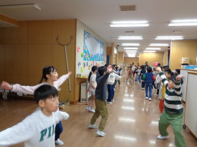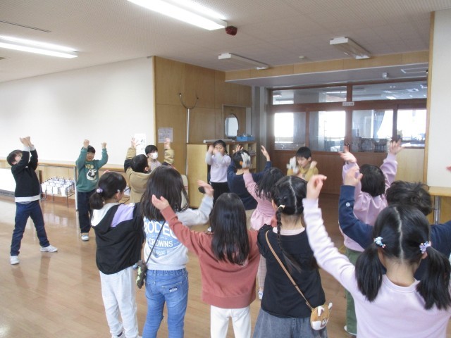 3月5日に行われる「卒業を祝う会」で、2年生はダンスをします。全校のみんなとも一緒にダンスを楽しむため、朝活動時間に各教室前の廊下でダンスを披露して振付を見てもらったり、体育館で練習したりしました。