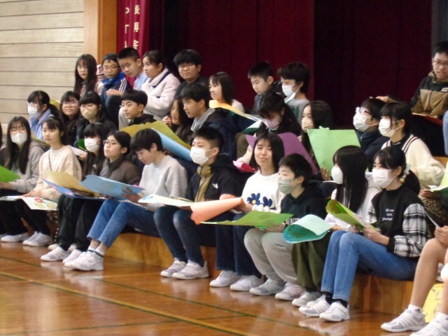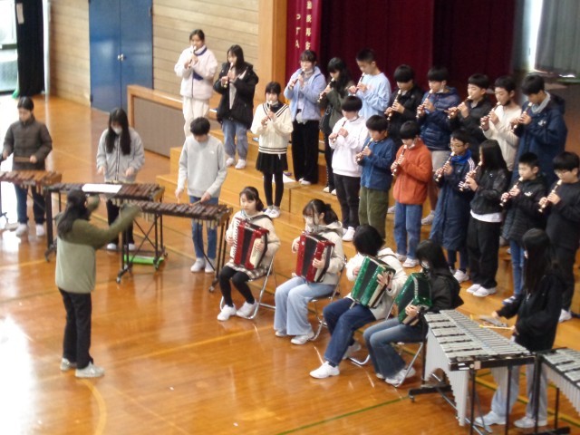 1~5年生が卒業を祝う会を開いてくれました。学年ごとにダンスやクイズ、音読劇等素敵な贈り物をくださり、6年生はとても嬉しそうな様子でした。感謝の気持ちを込めて、6年生は合奏のプレゼントを贈りました。卒業を間近に控えていますが、これからも下級生との思い出をつくっていきたいという思いを改めて感じています。