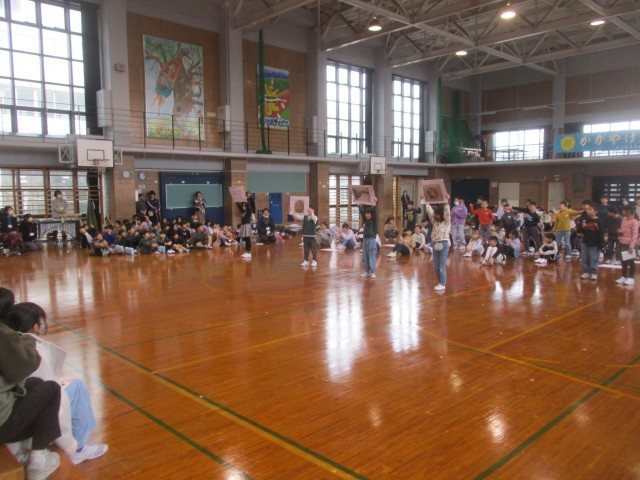 卒業生を祝う会では、6年生に今までの学校生活をテーマにした3択クイズを出しました。シンキングタイムにはダンスを踊ったり、リズムに乗って手拍子をしたりして、6年生や他の学年が楽しめるよう工夫しました。