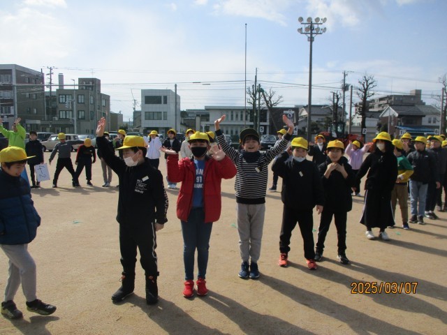 卒業お祝い週間では、「キズナ」という言葉で人文字づくりをしました。天候が心配でしたが、子供たちの思いが届いて、気持ちよい晴天の中で活動することができました。人文字と共に、6年生さんに感謝の気持ちを伝えました。