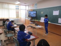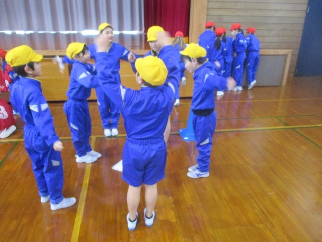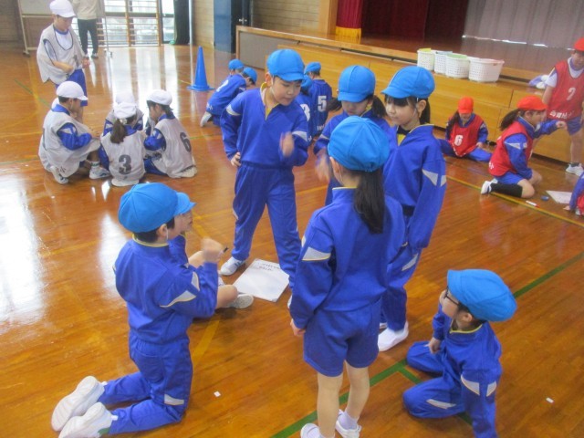 体育科の学習のポートボールでは、チームで作戦を立てたり、ポジションを話し合って決めたりして、練習や試合をしています。試合の後には、改善点を話し合って作戦を考え、ホワイトボードに書き表して共有しました。