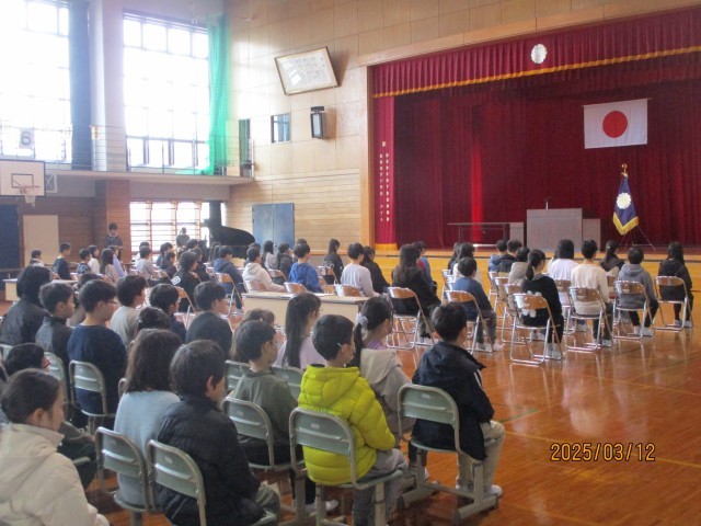 いよいよ卒業式が迫ってきました。学級の子供たちも、今まで6年生の班長さんにお世話になったことや一緒に楽しい活動をしたことを思い出しながら、練習に臨んでいます。今日は緊張感をもって、心を込めて歌を歌ったり立つタイミングを揃えたりして一人一人が一生懸命に参加しました。