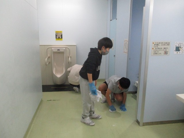 トイレの床や器具庫の中など、普段はできない部分を丁寧に掃除しました。