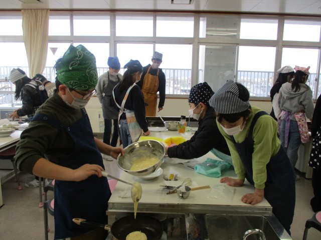 ホットケーキをつくりました。友達と協力して生地をこねたり、ソースやフルーツをきれいに盛りつけたりなど、とても楽しそうに活動する様子が見られました。