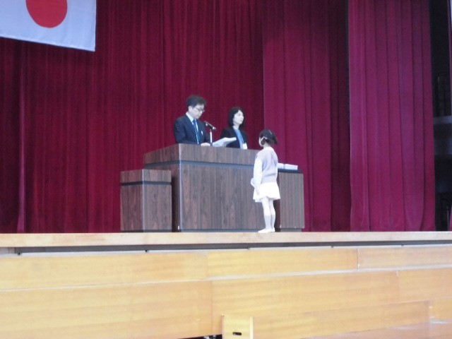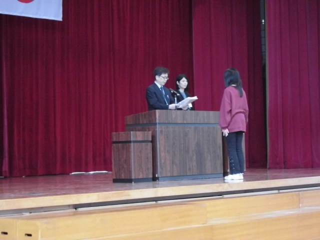 修了式が行われました。各クラスの代表が校長先生より、修了証をいただきました。