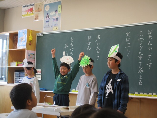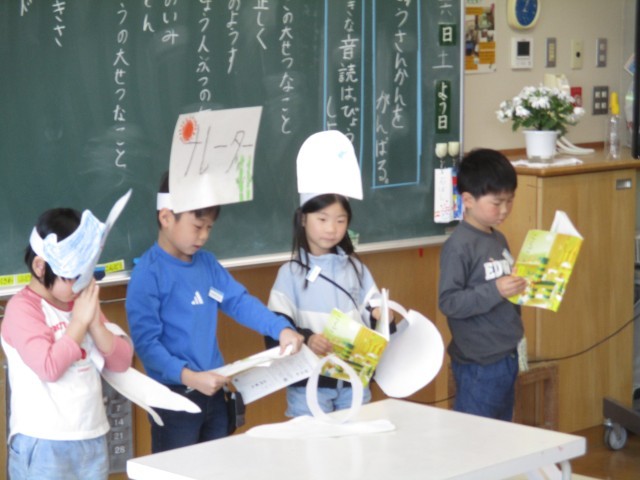 本日は学習参観でした。国語科の「ふきのとう」の音読発表を行いました。場面の様子や登場人物の気持ちが聞き手に伝わるように練習して、本番を迎えました。友達のよいところを発見し、実りある音読発表会になりました。