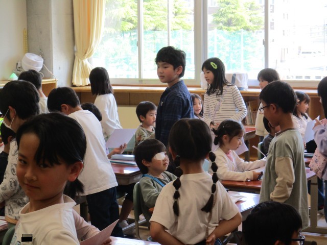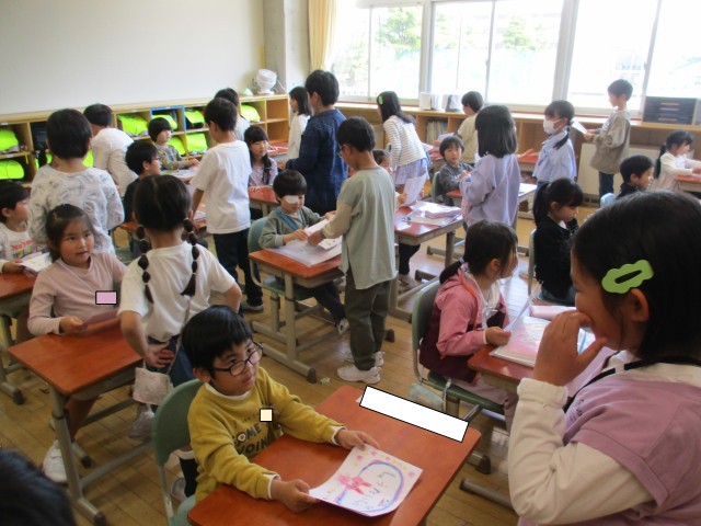 2年生から1年生へ生活科の学習の一環で「にしっ子学校探検ツアー」の招待状を送りました。明日の本番のためにたくさん準備していました。招待状をもらい、わくわくしている1年生を見て、2年生もうれしそうでした。