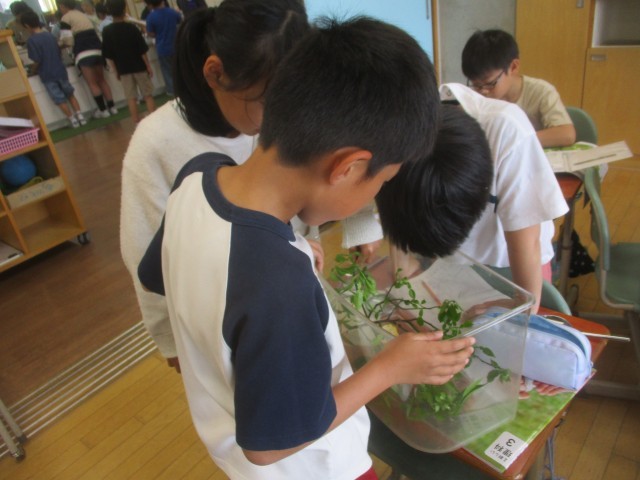 理科の学習でモンシロチョウとアゲハのよう虫を観察しました。