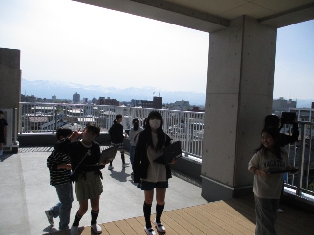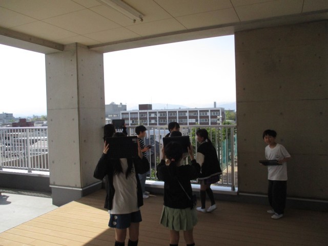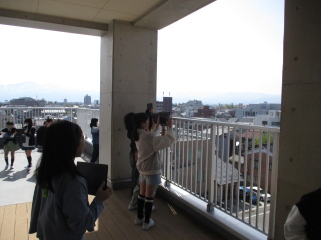 理科の学習で、雲の動きと雲の形を比べるために、空の方角と目標物を固定して、写真を撮りました。うまく比較ができるか楽しみです。